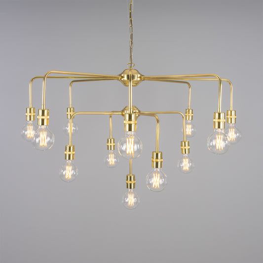 Mullan Lighting Pisa 13-Light Three-Tier Bare Bulb Brass Chandelier