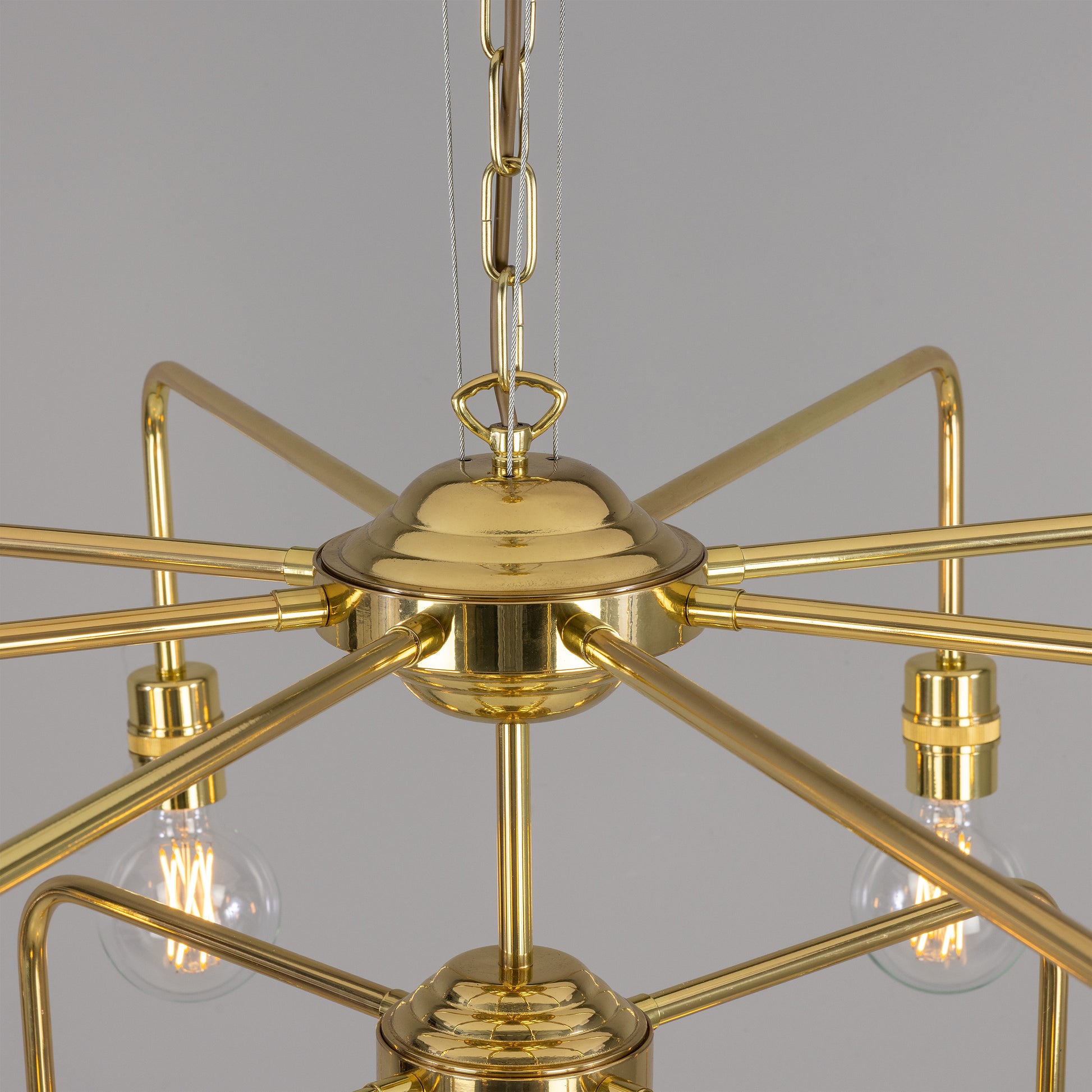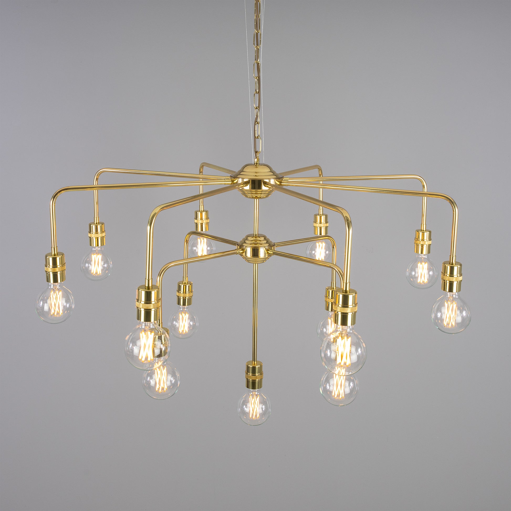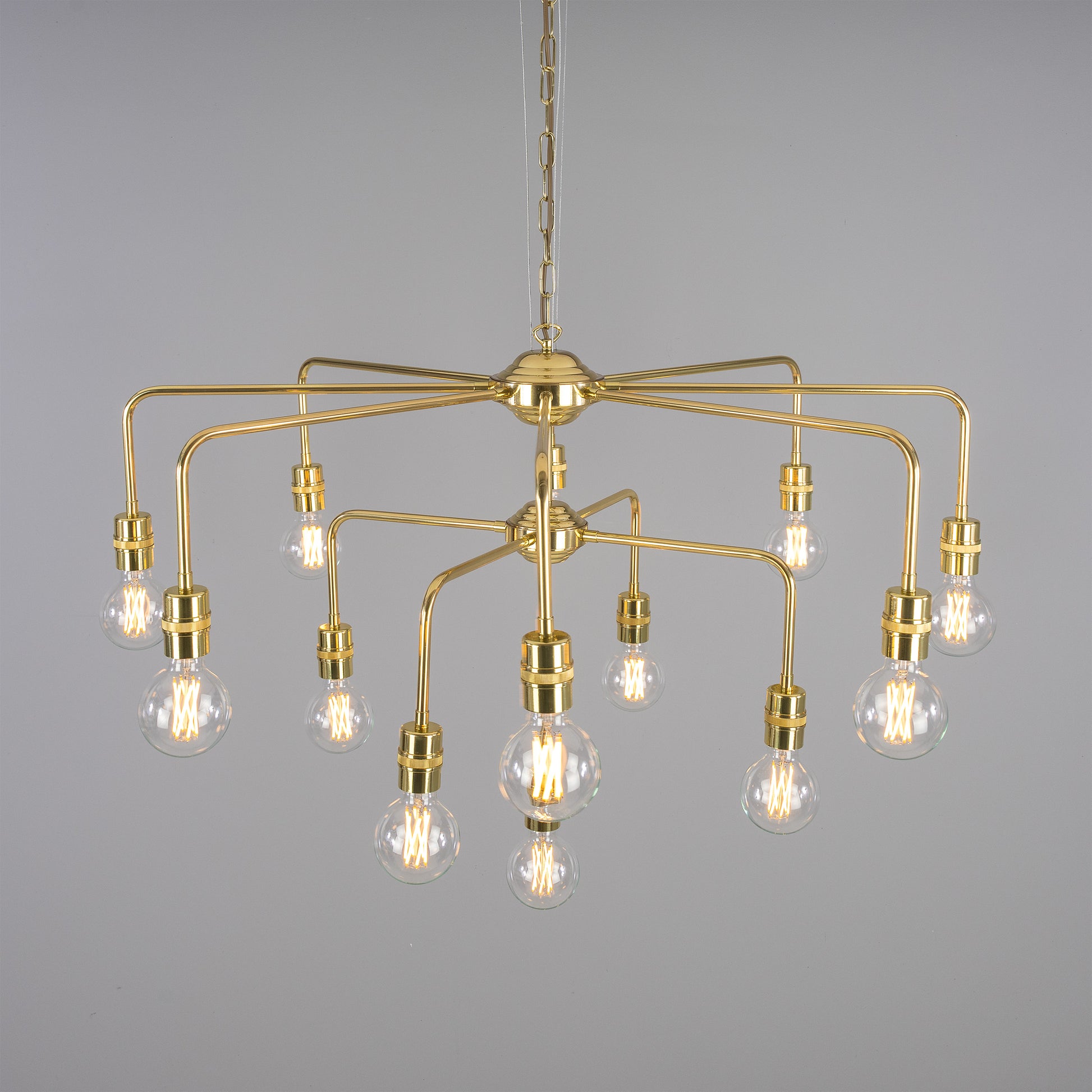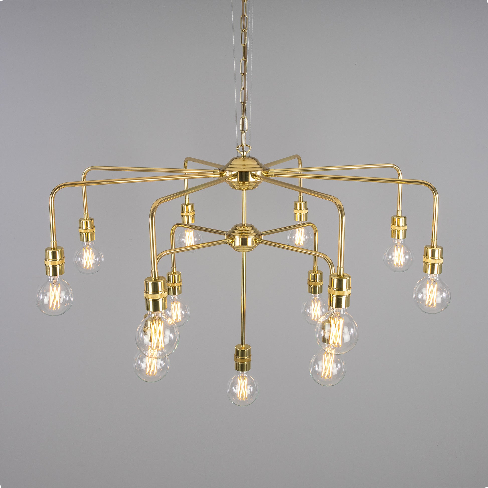 - Mullan Lighting Pisa 13-Light Three-Tier Bare Bulb Brass Chandelier
