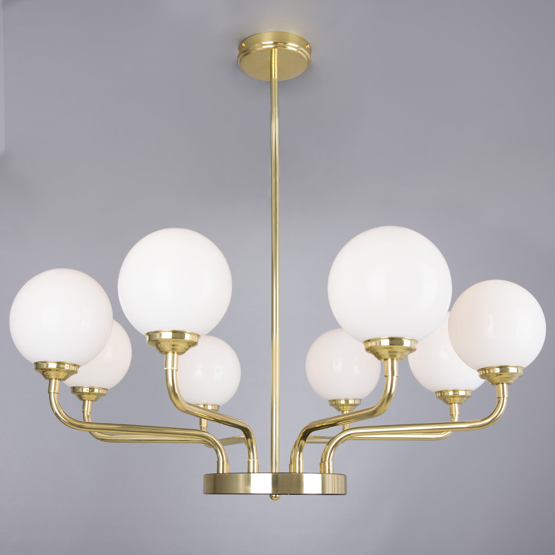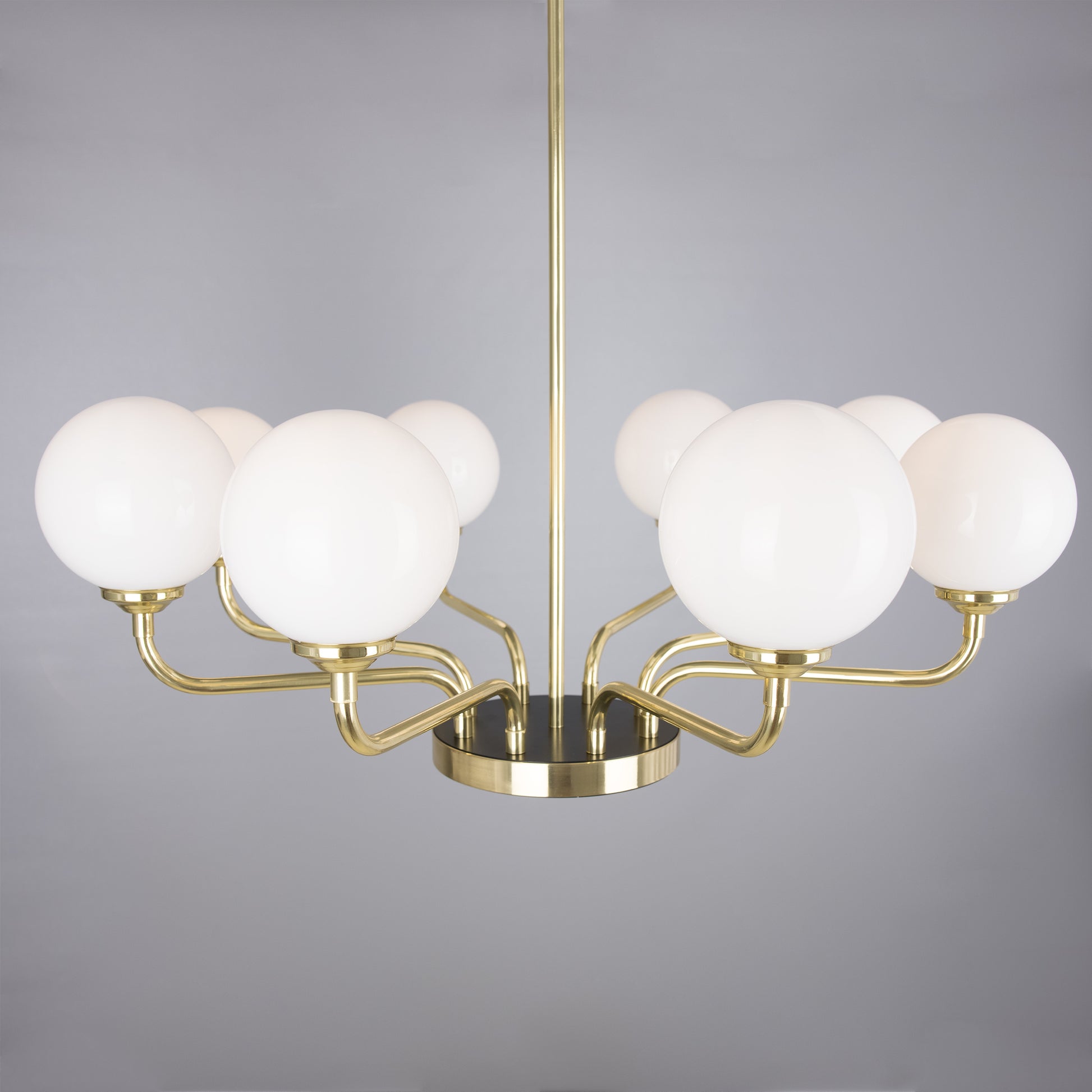 - Mullan Lighting Branford 8-Light Opal Glass Globe Brass Chandelier