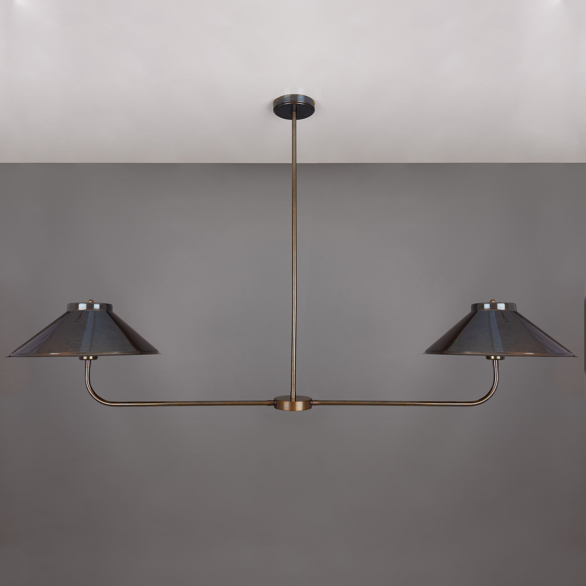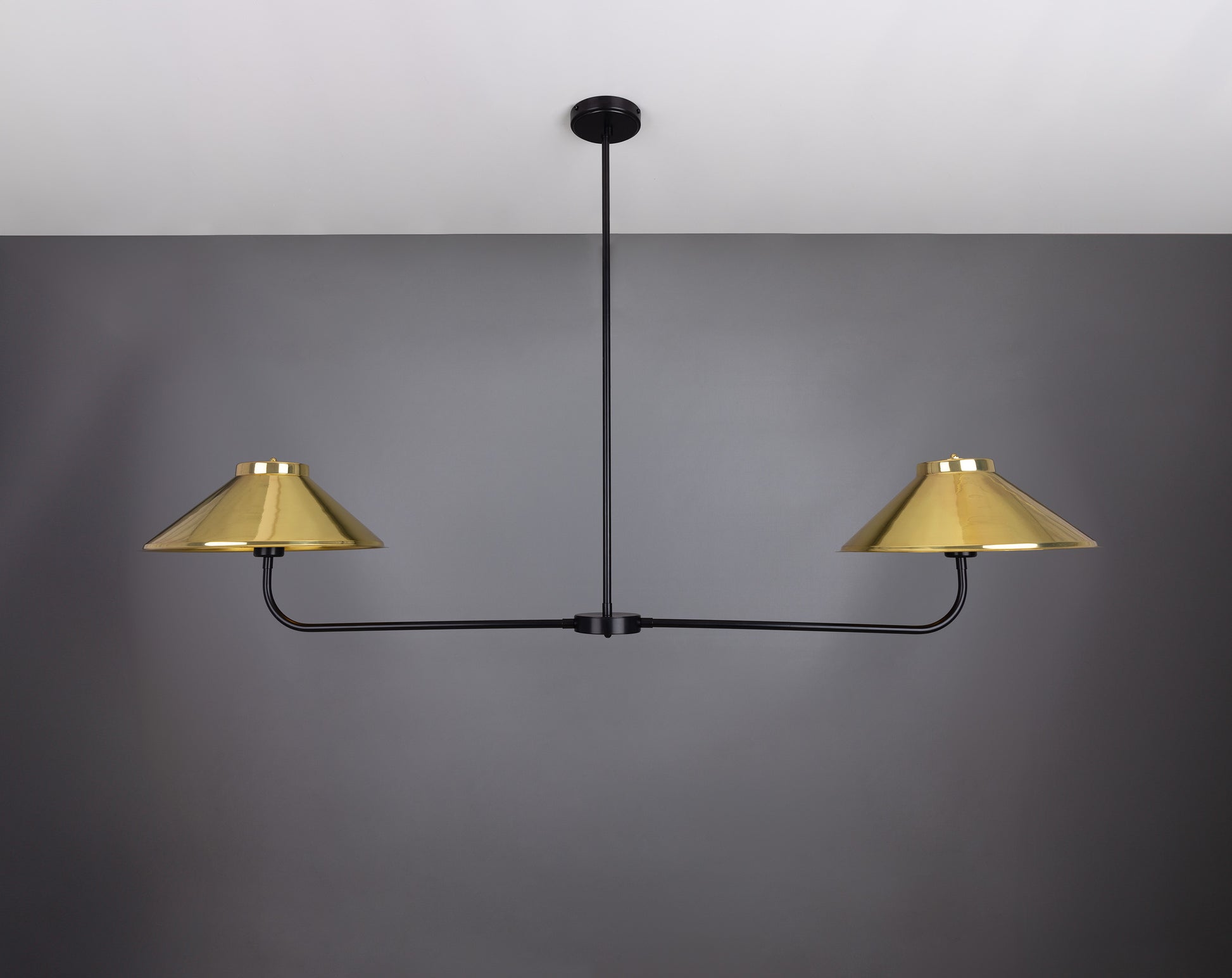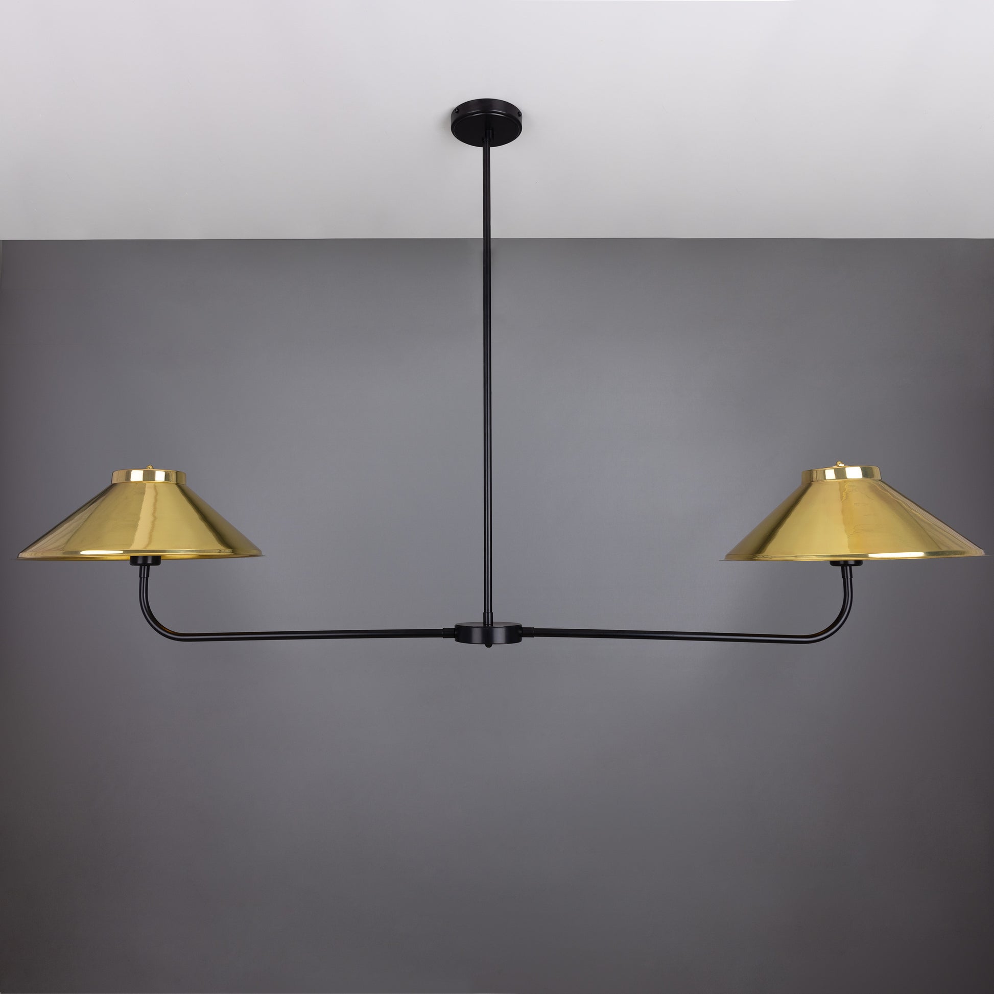 The Princeton 2-Light Brass Island Chandelier offers a sleek, contemporary silhouette designed for modern kitchens, dining areas, or breakfast bars. Its elongated form and warm brass finish create a refined focal point, while two downward-facing brass shades deliver focused illumination ideal for task or ambient lighting. With clean architectural lines and minimal styling, the Princeton chandelier blends effortlessly into modern, Scandinavian, and transitional interiors. Its slim structure makes it well-suited for installation over dining tables, islands, or work surfaces where balanced and directional lighting is required.